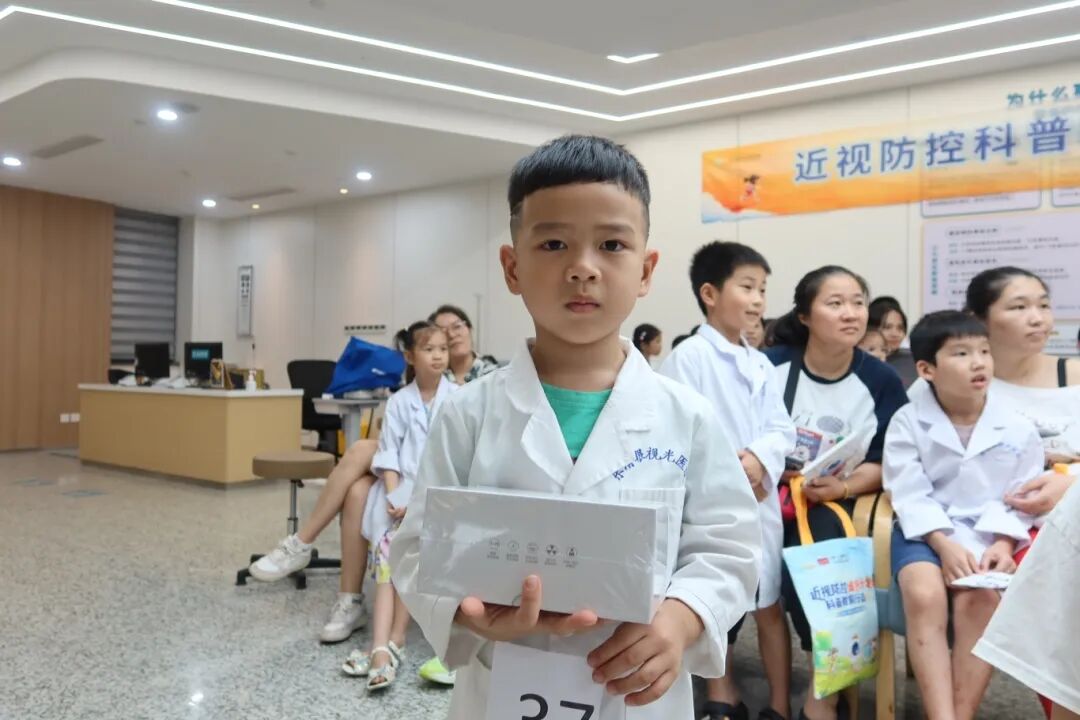 为了让孩子们更深入地了解眼科医生的工作,活动特别设置了“小小眼科医生”职业体验环节。小朋友穿上定制迷你白大褂,有模有样地学习操作部分检查设备,在互动中消除了对医院的恐惧,也在心中埋下了医学的种子。